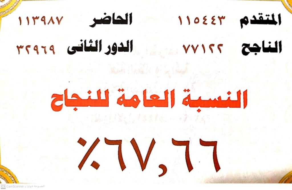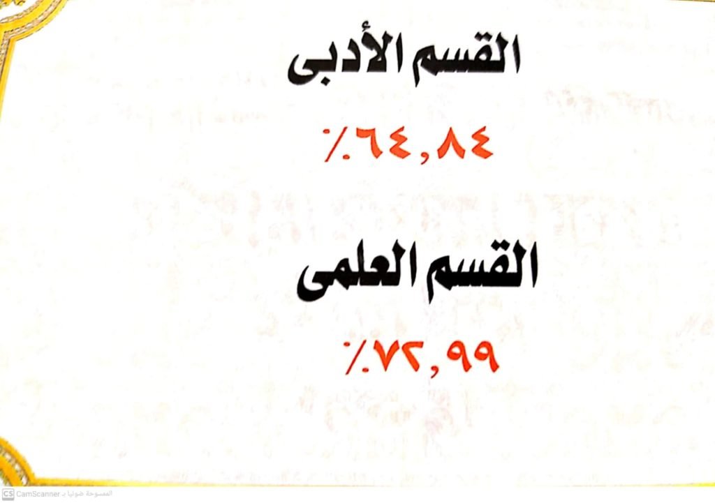 وكانت قد بلغت النسبة المئوية للنجاح العام الماضي 2018/ 2019 (49.98)% كنسبة عامة، ونسبة النجاح للقسم الأدبي 41.78% أما القسم العلمي 67.78%.