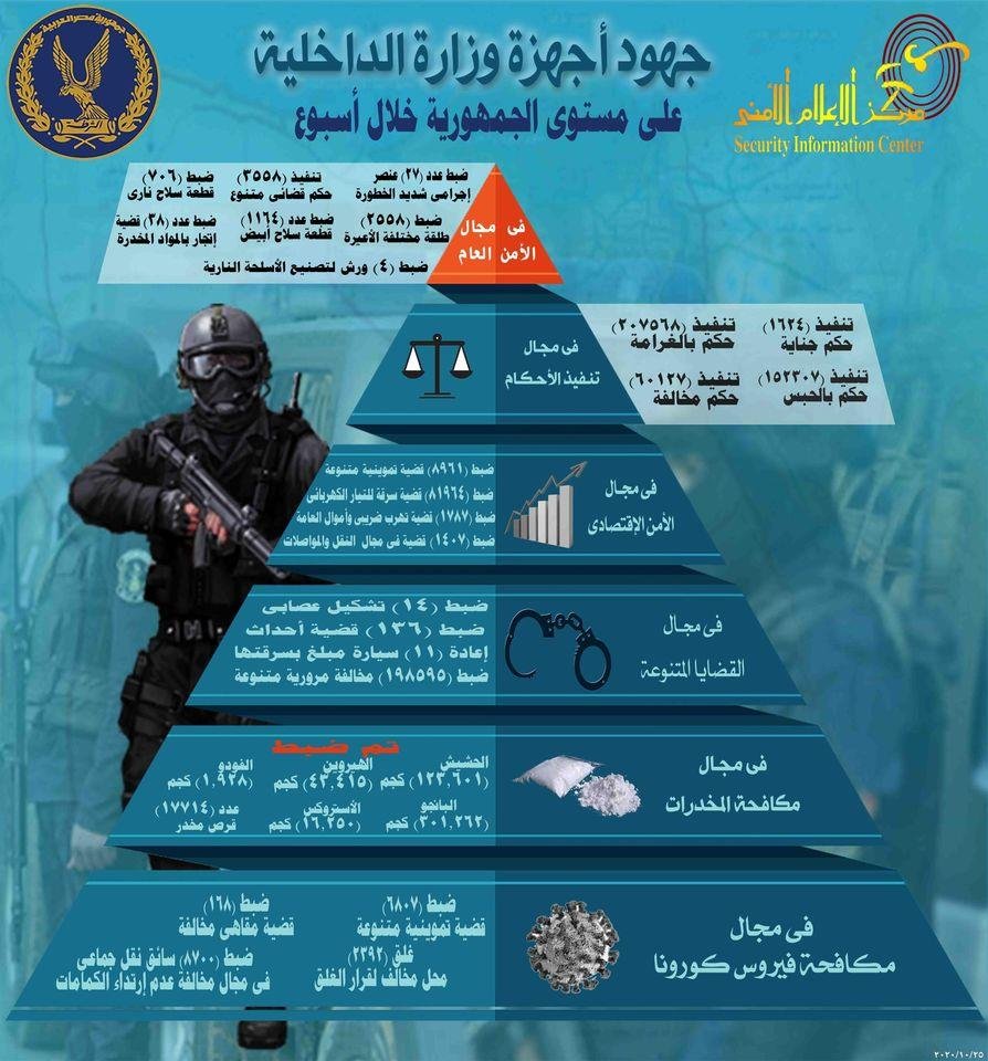وأعدت وزارة الداخلية “إنفوجرافيك”، يوضح جهود الحملات الأمنية خلال أسبوع: