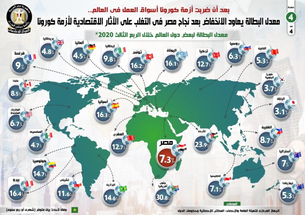 انخفاض معدل البطالة بعد نجاح مصر في التغلب على الآثار الاقتصادية لأزمة كورونا..إنفوجراف