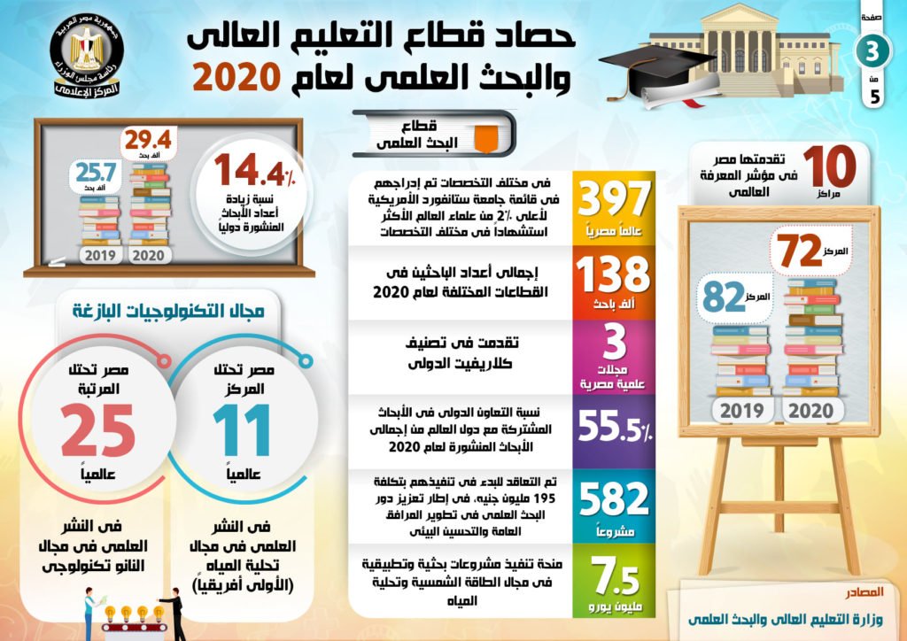 “بالإنفوجراف”.. حصاد قطاع “التعليم العالي والبحث العلمي” خلال عام 2020