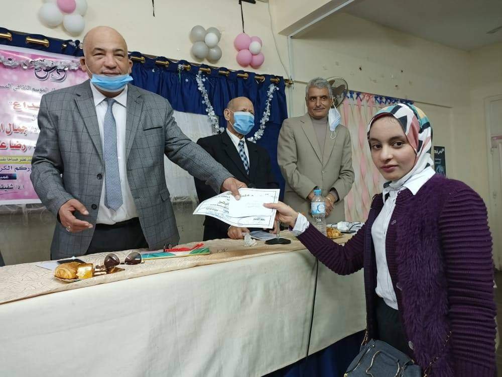 القصة القصيرة، الطالبة إسراء عبد الفضيل الفقي بالفرقة الثالثة عن قصتها “بداية المصرع”، الطالبة آلاء سامي لطفي بالفرقة الثانية عن قصتها “من ضعفي قوة”.