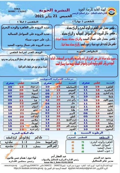 العظمى 19.. الأرصاد: طقس اليوم معتدل على القاهرة والوجه البحرى والرياح معتدلة
