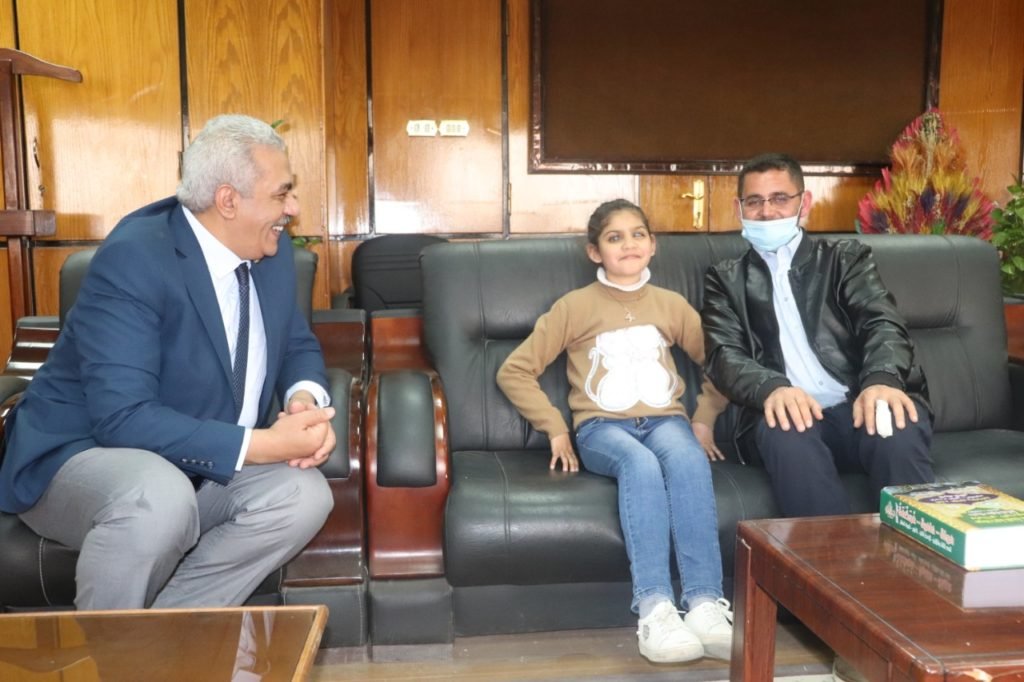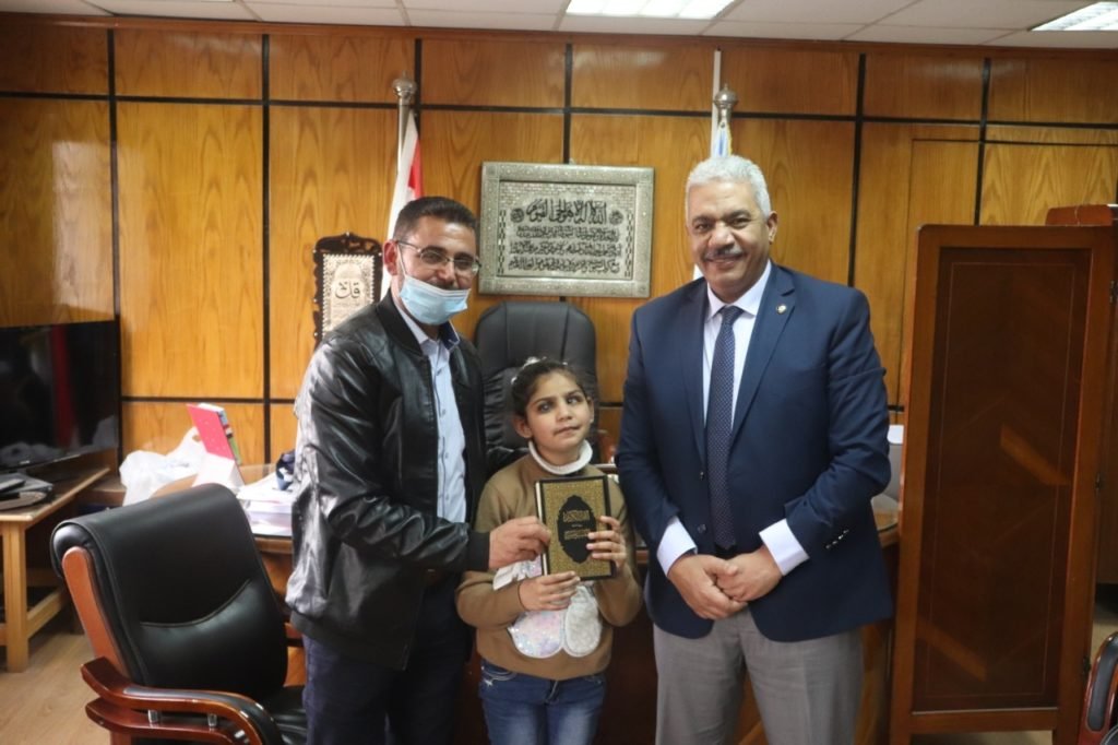 نائب رئيس جامعة الأزهر يستقبل الطفلة الفلسطينية النابغة سجى خِلَّة