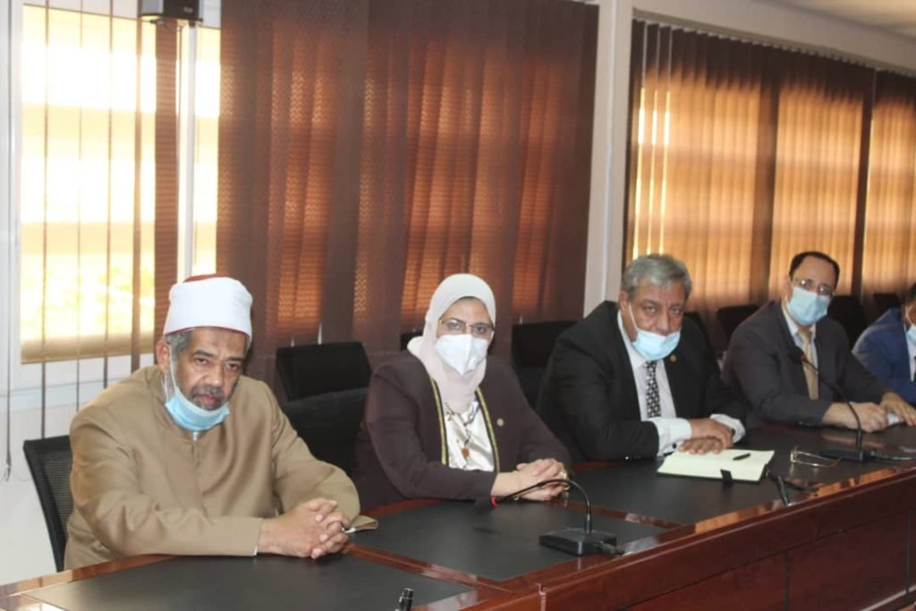 ضم وفد الأزهر كلا من: الدكتور خيري عبد الحميد، وكيل كلية طب بنين الأزهر بالقاهرة لشئون التعليم والطلاب، والدكتورة إيمان الشال، وكيلة كلية طب بنات الأزهر بالقاهرة، والشيخ محمد العبد، مسئول القوافل الطبية والإغاثية بمشيخة الأزهر.