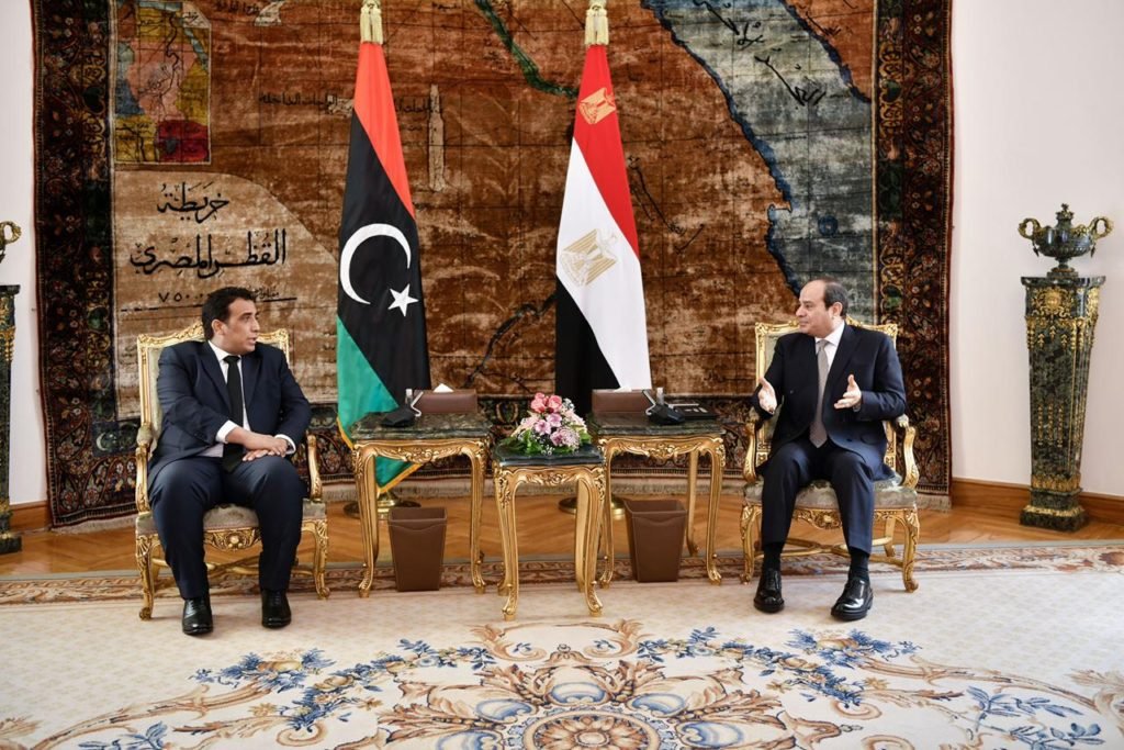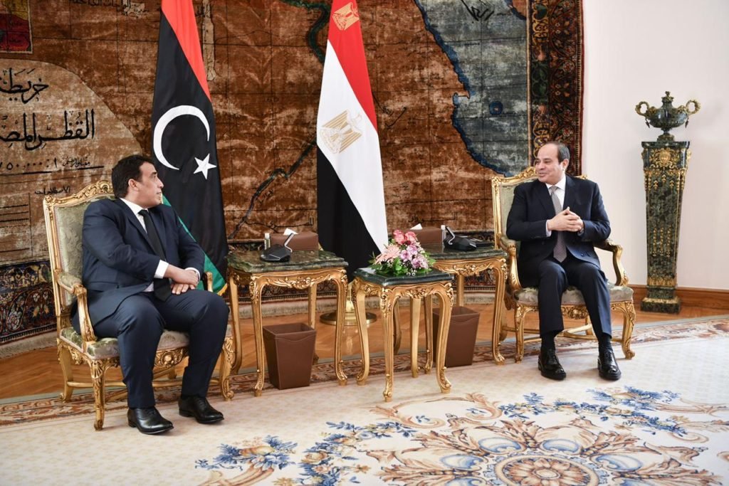وصرح المتحدث الرسمي باِسم رئاسة الجمهورية بأن الرئيس رحب بالسيد المنفي في أول زيارة له إلى بلده الثاني مصر عقب توليه منصب رئيس المجلس الرئاسي الليبي، مؤكداً دعم مصر الكامل والمطلق للسلطة التنفيذية الجديدة في ليبيا الشقيقة في كافة المجالات وفي جميع المحافل الثنائية والإقليمية والدولية، والحرص على تعزيز التنسيق الوثيق معها خلال الفترة الحالية، ومعرباً سيادته عن تعويل مصر على قدرة المجلس الرئاسي والحكومة على تحمل المسئولية التاريخية لإدارة المرحلة الانتقالية الحالية وتحقيق المصالحة الشاملة بين الليبيين، وتوحيد المؤسسات الليبية وصولاً إلى عقد الانتخابات الوطنية في موعدها المحدد في ديسمبر من العام الجاري، وذلك كخطوة هامة وفارقة للانتقال بليبيا إلى واقع جديد ونظام سياسي مستدام يستند إلى إرادة الشعب الليبي باختيارهم الحر.