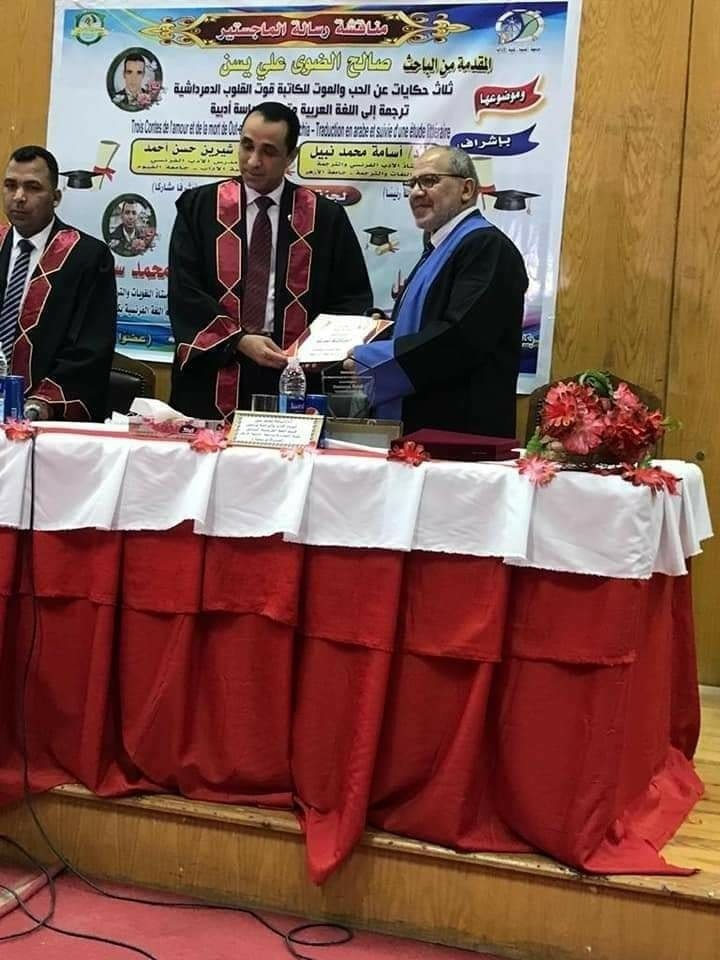 أقيم الحفل برعاية الأستاذ الدكتور أحمد عبد السلام عميد الكلية، حيث قام بمنحه درع الكلية. كما قام د. محمد سعد ، رئيس قسم اللغة الفرنسية، بتقديم درع قسم اللغة الفرنسية لفضيلته.
