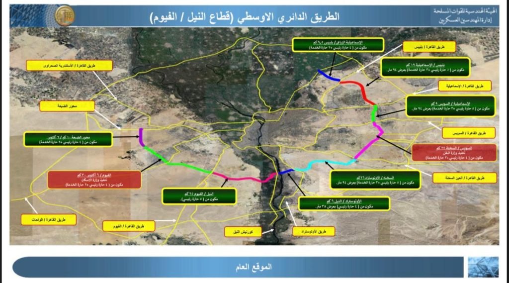 • يربط مدن شرق وغرب القاهرة من طريق “بلبيس – الإسماعيلية” الزراعي شرقاً إلى محور الضبعة غربًا