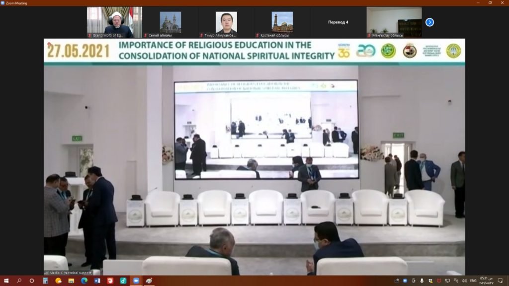 جاء ذلك خلال كلمته التي ألقاها فضيلته عبر تطبيق “زووم” في المؤتمر العلمي التطبيقي الدولي للجامعة المصرية للثقافة الإسلامية نور مبارك الذي عقد اليوم في مدينة ألماتي بكازاخستان؛ احتفالًا بالذكرى العشرين لتأسيس الجامعة.