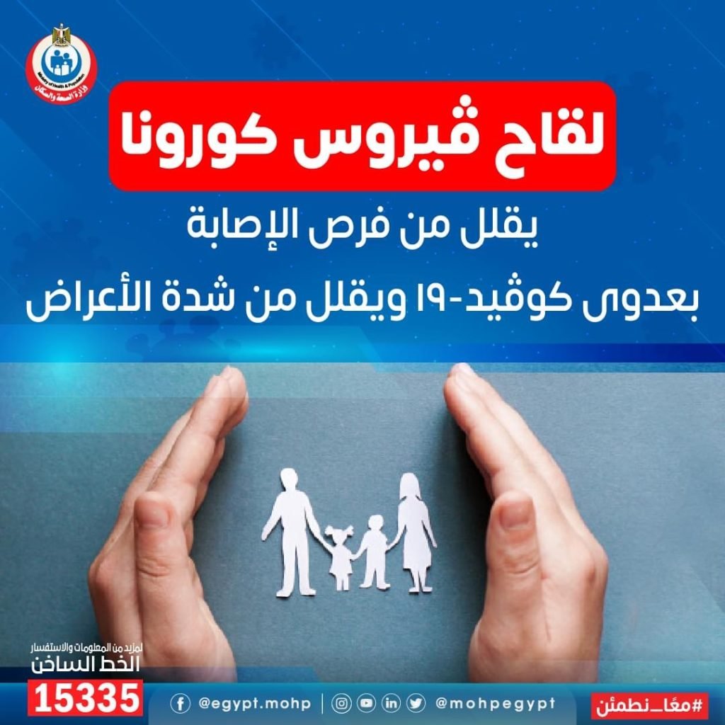 وأضافت وزارة الصحة والسكان، أن لقاحات كورونا آمنه وفعالة وتحفز الجهاز المناعى لإنتاج أجسام مضادة لمواجهة العدوى الفيروسية لكوفيد 19.