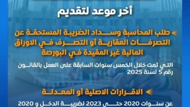 “المالية”: 12 أغسطس آخر موعد لتقديم طلب المحاسبة وسداد الضريبة المستحقة عن التصرفات العقارية