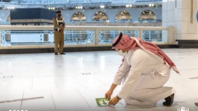 استعدادا لموسم الحج.. إعادة ترتيب ملصقات التباعد بالمسجد الحرام
