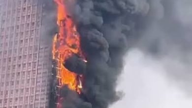 حريق كبير في ناطحة سحاب وسط الصين