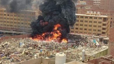 10 سيارات إطفاء تحاول إخماد حريق مخزن حي الهرم وإخلاء موقف سيارات مجاور