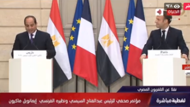 السيسي: أشكر الرئيس الفرنسي إيمانويل ماكرون على حُسن الاستقبال وكرم الضيافة
