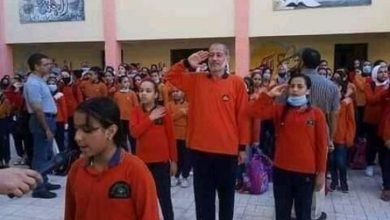 بالصور| مدير مدرسة بالجيزة يشارك الطلاب الطابور بالزي المدرسي.. لإزالة الرهبة