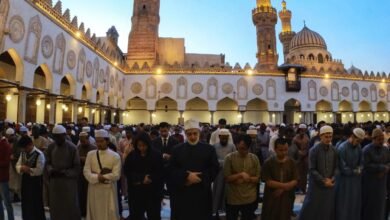 الضويني يصطف للصلاة مع الوافدين في صحن الجامع الأزهر