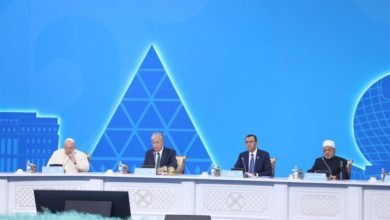 من كازاخستان: الإمام الأكبر يدعو لانعقاد لقاء خاص برموز الأديان يتدارسون فيه بصراحة: ماذا عليهم وماذا على غيرهم حيال الكوارث الاخلاقية والطبيعية؟