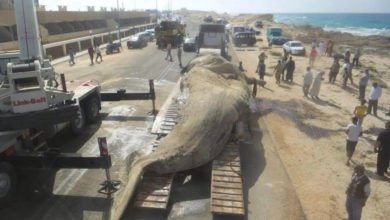 سحب ودفن الحوت النافق بحفرة عمقها 20 مترا بجنوب سيدي براني في مطروح