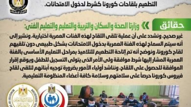 الحكومة تنفي إجبار التلاميذ في الفئة العمرية من 12 حتى 18 عاماً على التطعيم بكورونا كشرط لدخول الامتحانات