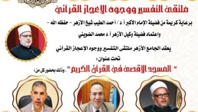 الجامع الأزهر يعقد ملتقى التفسير الأسبوعي غدًا بعنوان”المسجد الأقصى في القرآن الكريم”