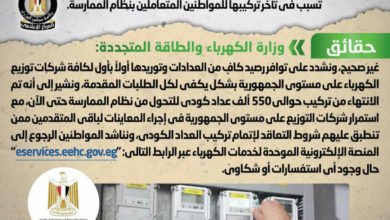 عدم صحة ما يتم تداوله من وجود نقص في العدادات الكودية بشركات توزيع الكهرباء