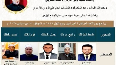 بالتعاون مع الجامع الأزهر.. الأسبوع الدعوي الحادي عشر يسلط الضوء على التأهيل الإلهي للنبي ﷺ” في الأسبوع الدعوي