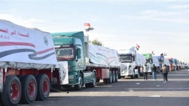 تحرك شاحنات قافلة المساعدات الـ109 تمهيدا لدخولها من مصر إلى قطاع غزة