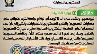 المالية تنفى تحصيل ضرائب على حسابات المصريين بالخارج المستوردين للسيارات