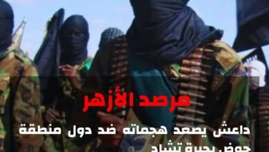 الازہر آبزرویٹری : داعش نے جھیل چاڈ کے طاس کے ممالک کے خلاف اپنے حملوں میں اضافہ کر دیا اور خبردار کیا: یہ خطرناک اضافہ مغربی افریقہ میں دہشت گردی کے بڑھنے کی نشاندہی کرتا ہے۔