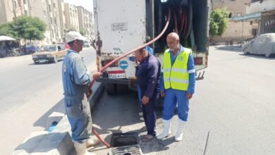 صرف الإسكندرية تواصل تطهير شنايش الأمطار وسط المدينة استعدادا للنوات