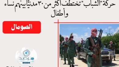 “مرصد الأزهر”: حركة الشباب تختطف أكثر من 30 مدنيًّا بينهم نساء وأطفال في الصومال