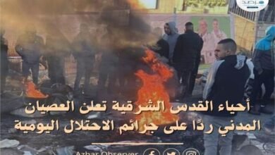 مرصد الأزهر يحذر من اشتعال الوضع في القدس جراء الإرهاب الصهيوني المتواصل