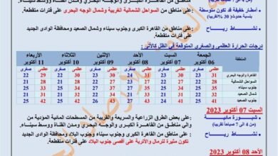الأرصاد تنشر مفاجآت في حالة الطقس لـ 6 أيام مقبلة