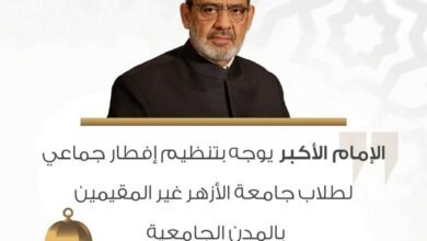 الإمام الأكبر يوجه بتنظيم إفطار جماعي لطلاب جامعة الأزهر غير المقيمين بالمدن الجامعية