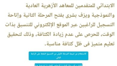 “الأزهر” يعلن نتيجة المرحلة الأولى للتنسيق الإلكترونى لمرحلة رياض الأطفال والصف الأول الابتدائي